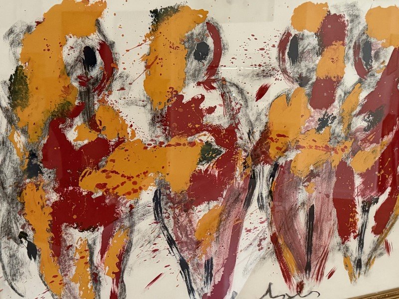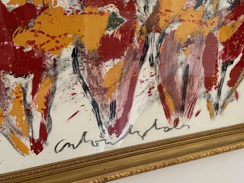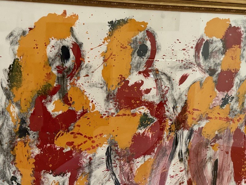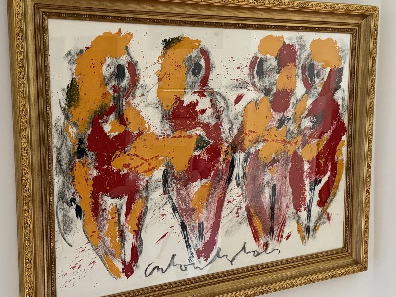 Zeer groot mooi ingelijst werk geschilderd door Anton Heyboer.
